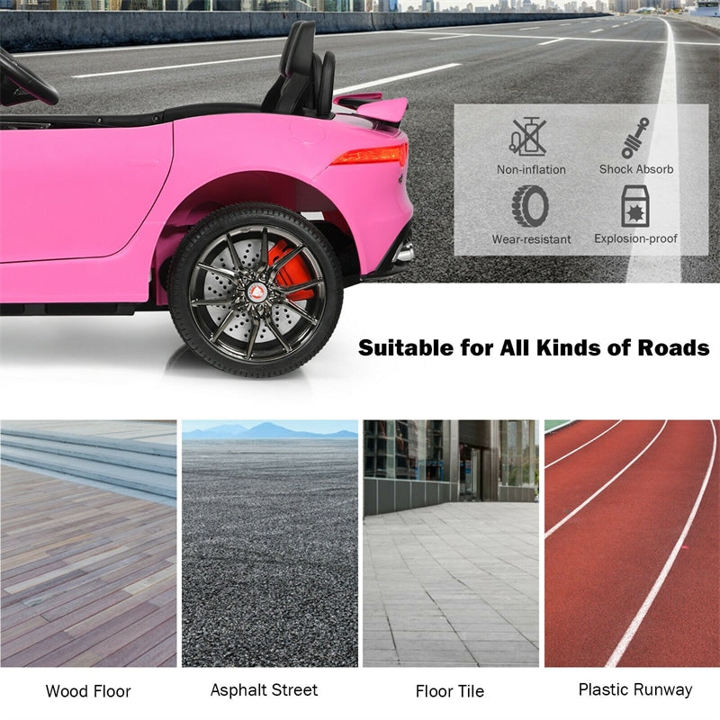 - Triple Secure Design: This kid's electric ride-on car toy is equipped with an intelligent slow start device to effectively prevent accidental injuries caused by sudden acceleration or braking. And wear-resistant wheels with shock absorb design ensure that the car rides smoothly and safely on the road. More, the multi-point seat belt design can reduce inertial injuries ensuring the safety of kids. Also, it gets the ASTM CPSIA CEC certificated.