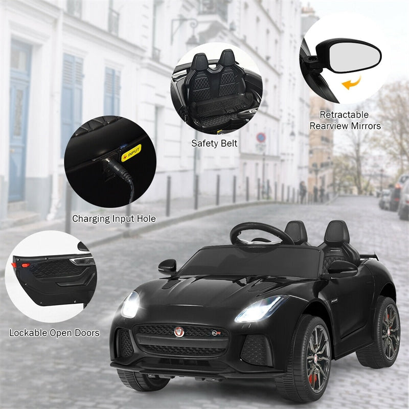 - Officially Licensed Ride-On Toy: This officially licensed Jaguar F-type ride-on car has a cool and stylish appearance along with headlights and horns. Featuring dual exhaust pipes and mirrors, it greatly imitates the real car. Additionally, the double-door opening design makes it easier for kids to get in and out smoothly.