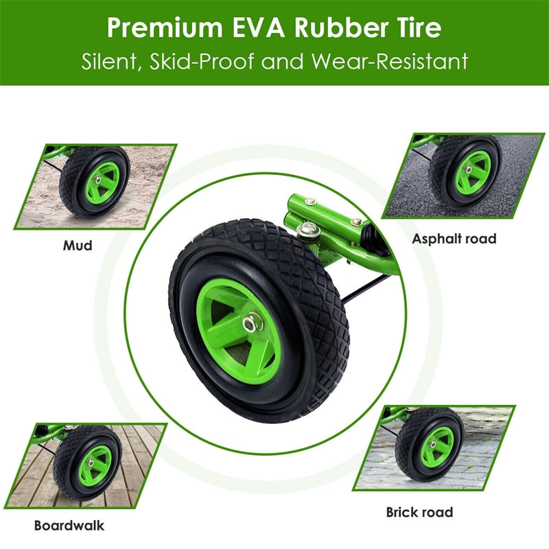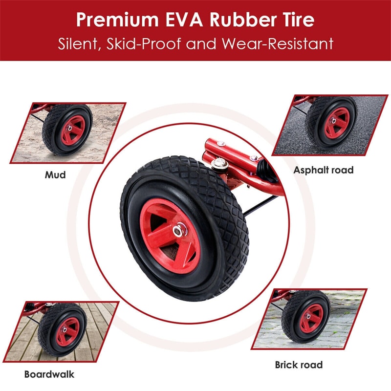 - Well Selected Materials: Made of a metal frame and Polypropylene plastic, this kids' pedal go-kart is durable and stable, which is secure for your kids to play with more fun no matter indoors or outdoors. Apart from this, 4 EVA rubber wheels with a proper size feature an anti-skid secure design for your kids to drive in many places such as hard surfaces, on grass, ground which lessens the risk of hazards.