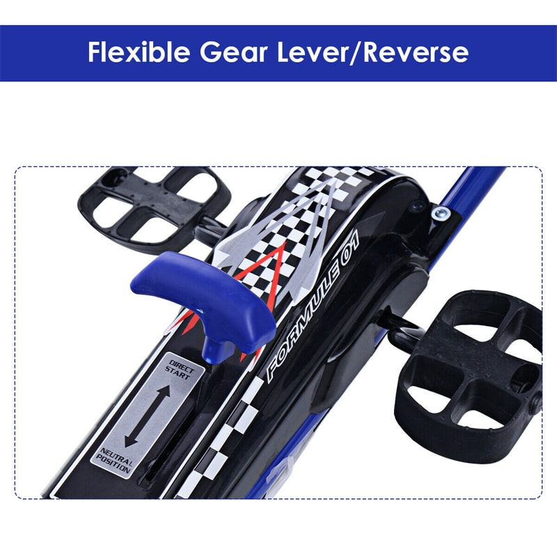 - Simple Operation: Kids can easily control the powered pedal go-kart by the steering wheel to move forward and backward. Meanwhile, they can pull back the hand break next to the seat to stop this pedal go-kart. The gear lever is also included which is located in the middle of the chain guard. Normally use the go-kart when the gear lever pulls forward.