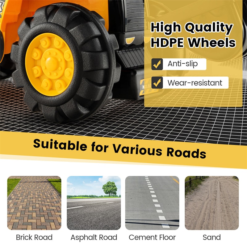 - High-Quality Material & Durable Tires:? The body of this well-made kids ride-on excavator is made of PP raw material and 4 wheels are made of PE material, which is strong enough to withstand slight collisions and ensures long toy use for all road surfaces. Besides, the waterproof and easy-to-clean surface will please every parent.